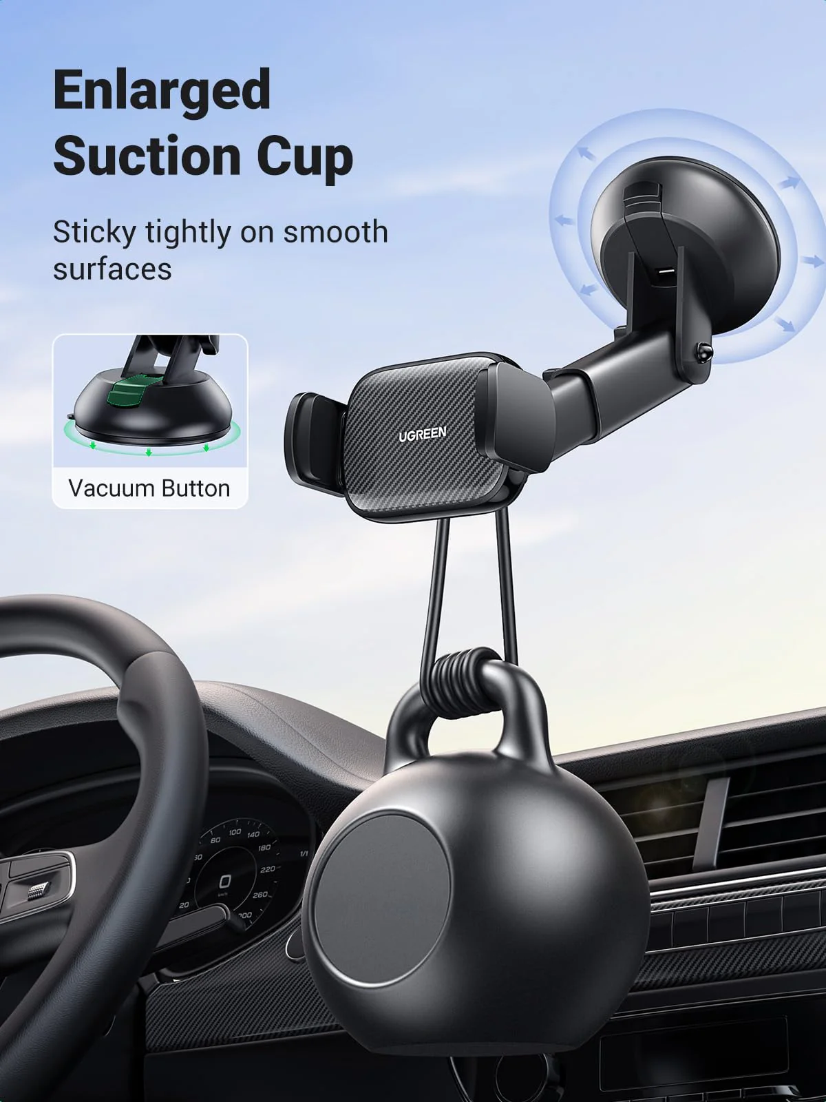 UGREEN Car Phone Holder (Telescopic Arm, 360° Rotation)